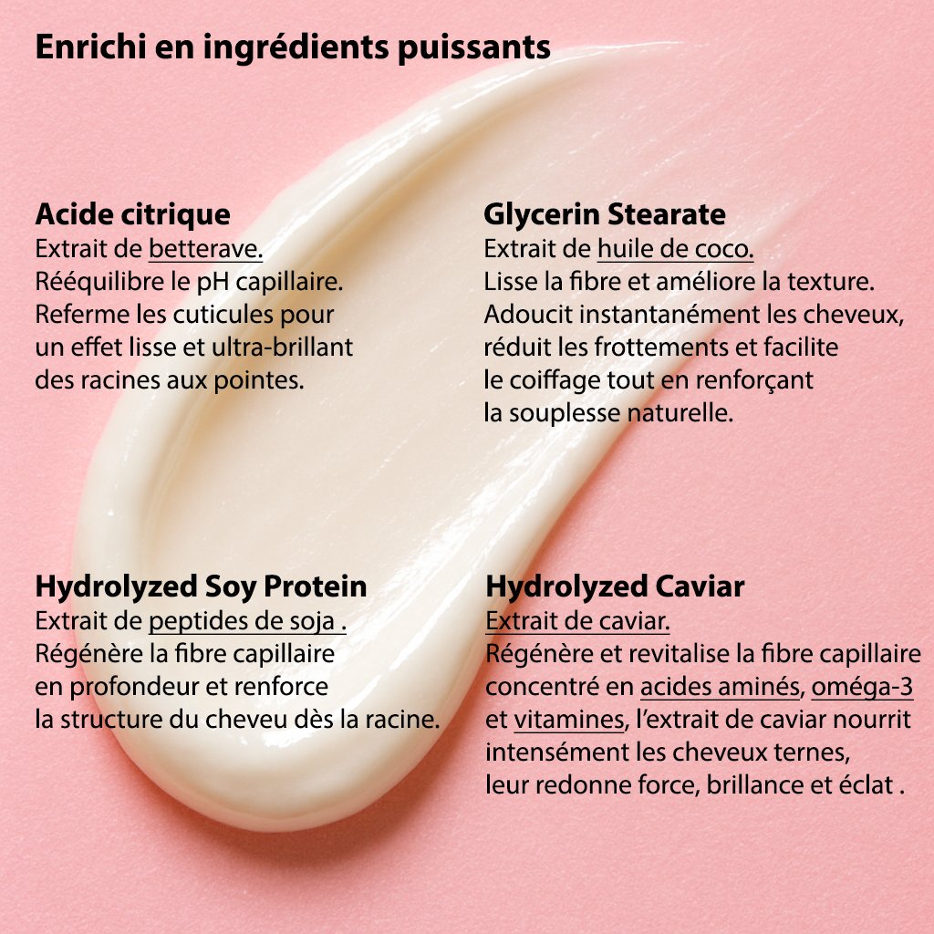 Le Botox Collagène Caviar et les acides aminés pénètrent profondément la fibre capillaire, réparant et nourrissant les cheveux en profondeur, sans compromettre leur bien-être.